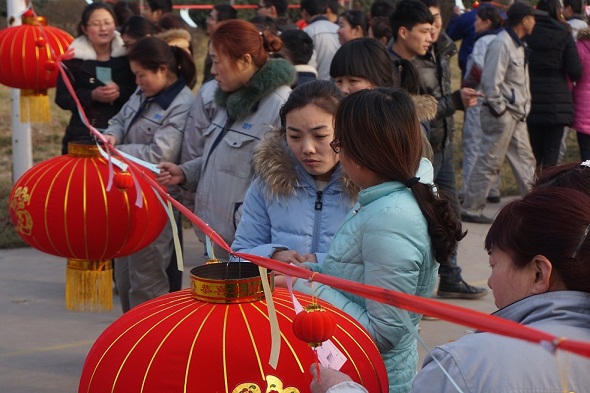為弘揚民族文化,讓職工們體驗元宵節(jié)猜燈謎的傳統(tǒng)習俗,豐富企業(yè)文化生活,營造喜慶、祥和的節(jié)日氛圍,公司于2015年3月3日(正月十四)下午舉辦了河南萬杰第四屆“慶元宵、猜燈謎”活動。本次活動由公司行政部、總經(jīng)辦聯(lián)合舉辦,并得到了各部門職工的大力支持。 本次“猜燈謎”活動,謎面科學而通俗,其中涵蓋著字謎、成語、腦筋急轉(zhuǎn)彎及公司戰(zhàn)略規(guī)劃問答等內(nèi)容,生動而活潑,面廣而量大。 下午16:30,萬杰全體家人準時來到操場,在行政部經(jīng)理劉志軍對本次“慶元宵 猜燈謎”的活動規(guī)則進行說明后,河南萬杰第四屆“慶元宵 猜燈謎”活動正式開始。 zui為吸引職工眼球的是公司操場內(nèi)一排排的紅燈籠及燈籠上貼著燈謎的各色紙條。微風吹來,謎面隨風起舞,職工們穿梭其間,流連忘返。謎面前,一雙雙欣喜而激動的眼睛閃爍著智慧的光芒。大家積極參與,三三兩兩聚在謎題下細心斟酌、認真思索,現(xiàn)場不時傳出猜中謎底后欣喜的歡呼聲,場面熱鬧非凡,處處洋溢著濃濃的文化氣息。有的同事在燈謎前冥思苦想,也有同事想到答案豁然開朗的,還有些同事因久久想不到答案而聚集在一起共同探討……,盡管今年燈謎的難度較往年大得多,但仍擋不住大家積極開動腦筋的激情與智慧,zui終通過大家的努力絕大部分燈謎都被猜中。職工們猜到燈謎時的興奮與領(lǐng)獎時的喜悅,把活動的氣氛推向高潮。 zui后,計分員根據(jù)猜中謎底的數(shù)量統(tǒng)計出前十名人員,公司領(lǐng)導分別為每位獲獎人員贈送了一對大紅燈籠,給首個猜出答案的人和猜出總數(shù)zui高的家人獎勵萬杰紀念茶杯一個,活動在歡聲笑語中結(jié)束! 在職工的內(nèi)心深處,公司每年舉行“鬧元宵,猜燈謎”活動儼然成為了萬杰的習俗之一。每當元宵前夕,大家都期盼著這項熱熱鬧鬧的活動,因為她帶給我們的不僅僅是獎品,還有歡聲笑語。小小的燈謎讓大家之間的距離變得更近了,小小的燈謎讓萬杰“以人為本,人以孝為根”的企業(yè)文化深入人心。 “慶元宵